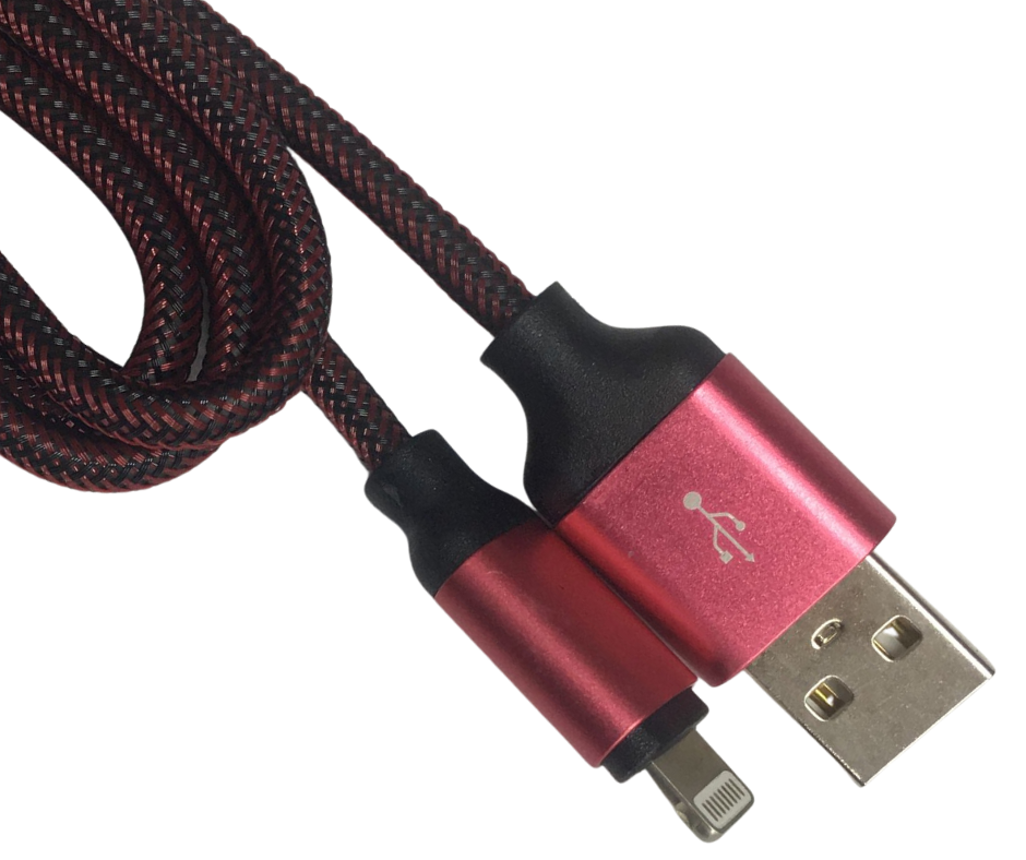 1X Cable Carga Rápida USB-IPhone Color Negro-Rojo 1 metro