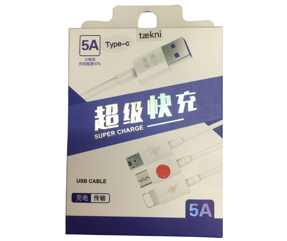 1x Cable Carga Súper Rápida 5A USB-Tipo C Blanco 1 metro.