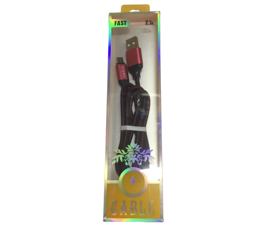 Cable de Carga Rápida USB-V8 Color Negro Rojo 1 metro.