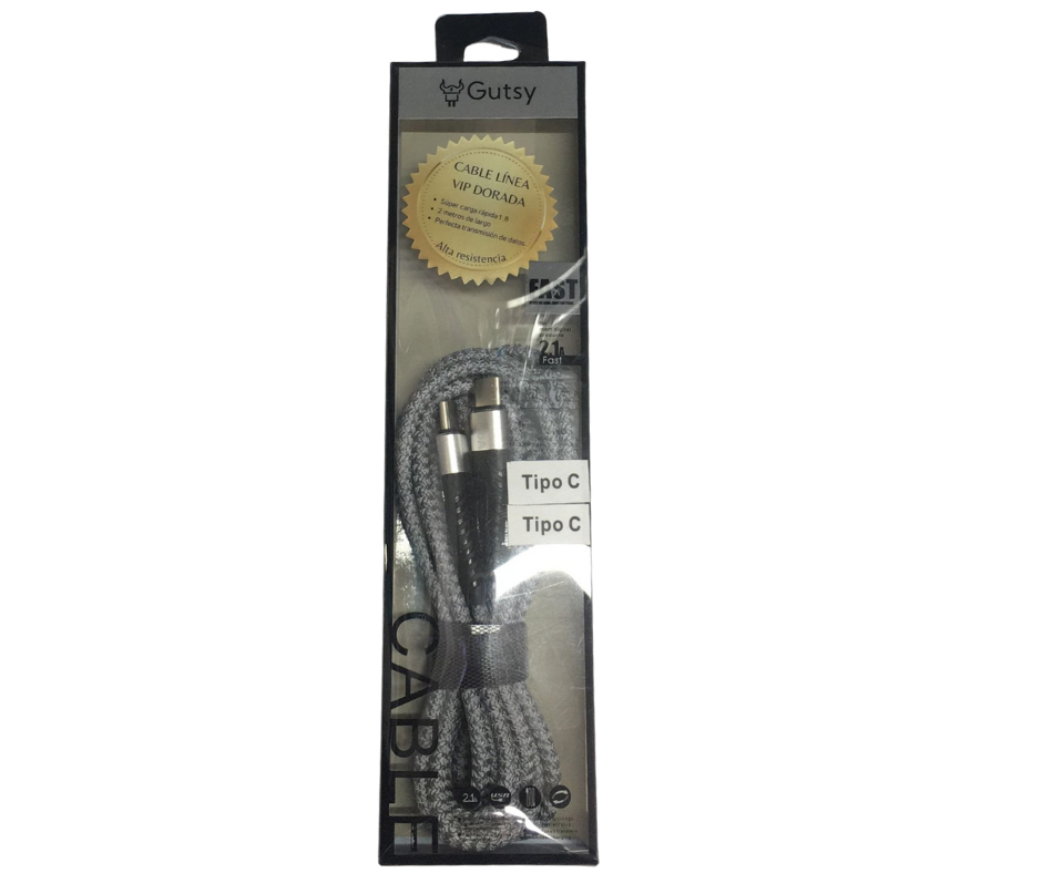Cable de Carga Súper Rápida Tipo C-Tipo C Uso Rudo Gris 2 metros.