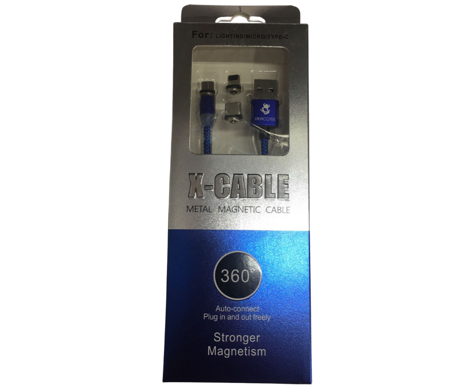 1x Cable Magnetico Iman 3 en 1 Carga Rapida Para iPhone V8 Tipo C Azul.