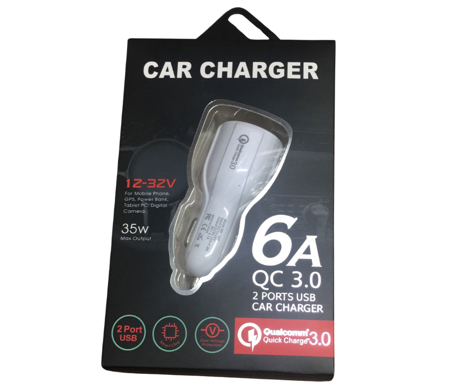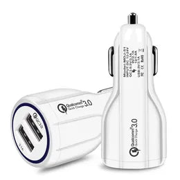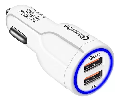 Cargador Para Auto Carga Rápida 2 Entradas USB 3A Blanco Vikingotek