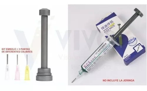 Embolo de Aluminio Jeringa Dosificadora Para Flux / Soldadura En Pasta, 3 Puntas .