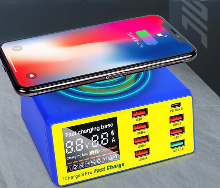 Cargador mecánico USB de 8 puertos, adaptador QC3.0 de carga rápida, estación de carga inalámbrica HUB, cargador rápido PD para teléfonos móviles