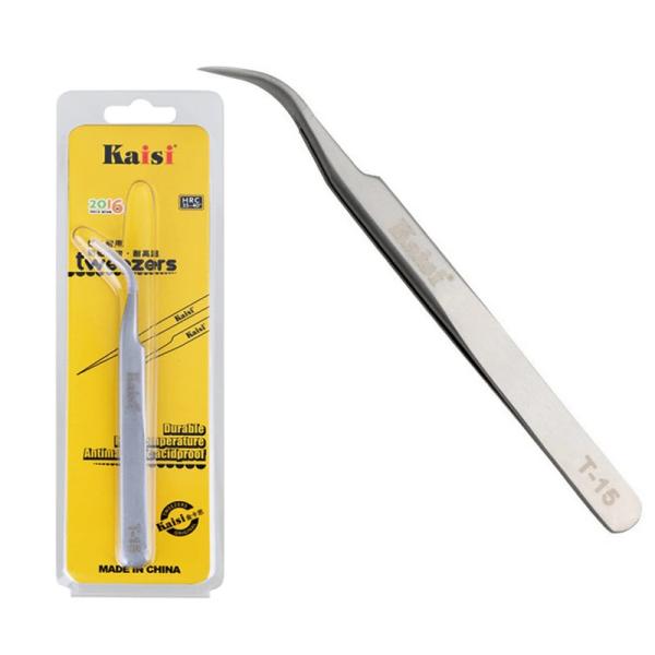 Pinza Curva Antiestática Alta Precisión De Acero Kaisi T-15 Vikingotek
