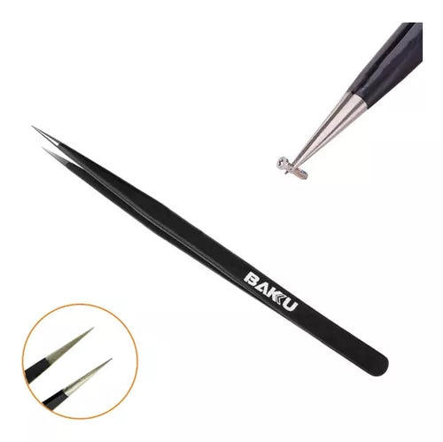 Tweezer Pinza Recta Antiestática Punta Larga Fina Baku Bk-11.