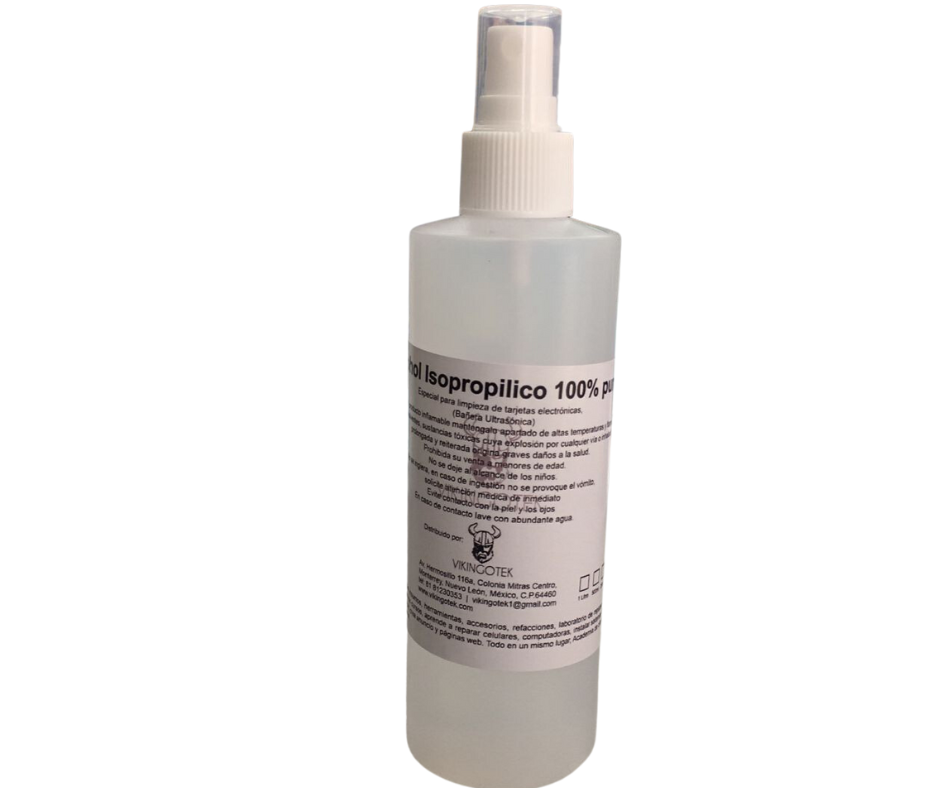Alcohol Isopropílico 250Ml Para Limpieza De Celulares, Equipos Electrónicos incluye atomizador Vikingotek